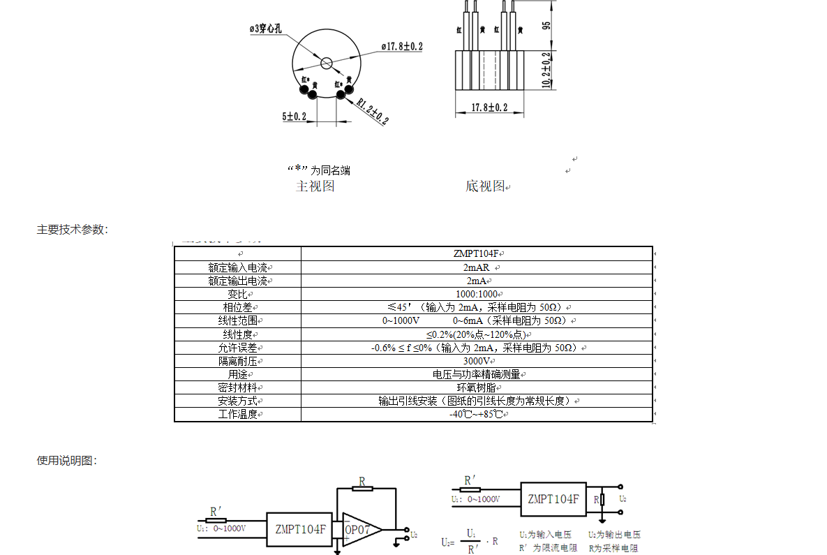 ZMPT104F精密电流型电压互感器 ZMPT104F电压互感器,体积小,精度高,一致性好,用于电压与功率精确测量。