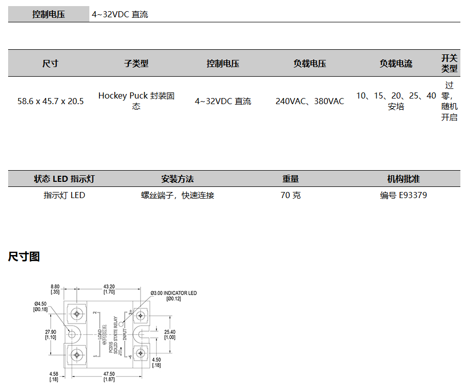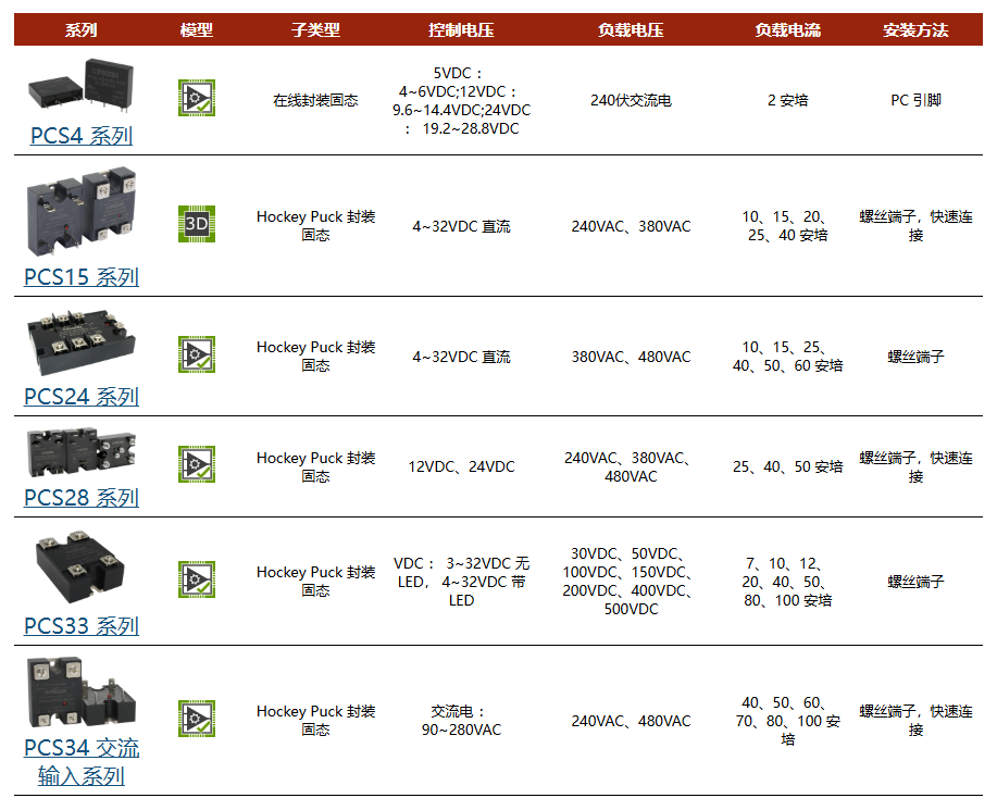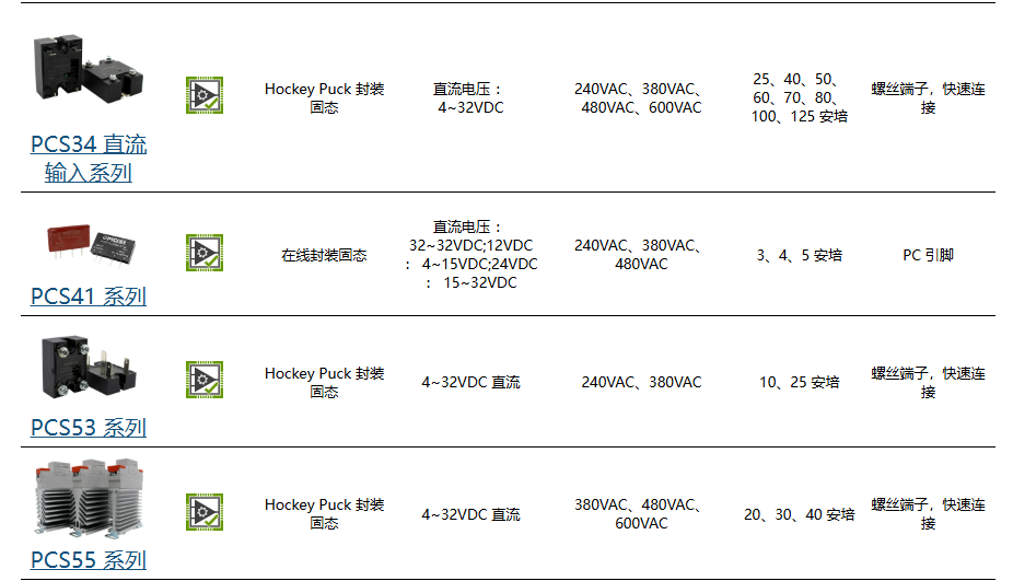 ● PCS15 系列固态继电器 ● 特征 10 至 40 安培输出继电器 直流输入 内置缓冲器 输入和输出之间的光隔离