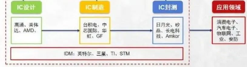 所谓的IDM也就是垂直整合制造,它是一种集芯片设计、制造、封装、测试和销售等多产业链环节于一体的一条龙产业运作模式。