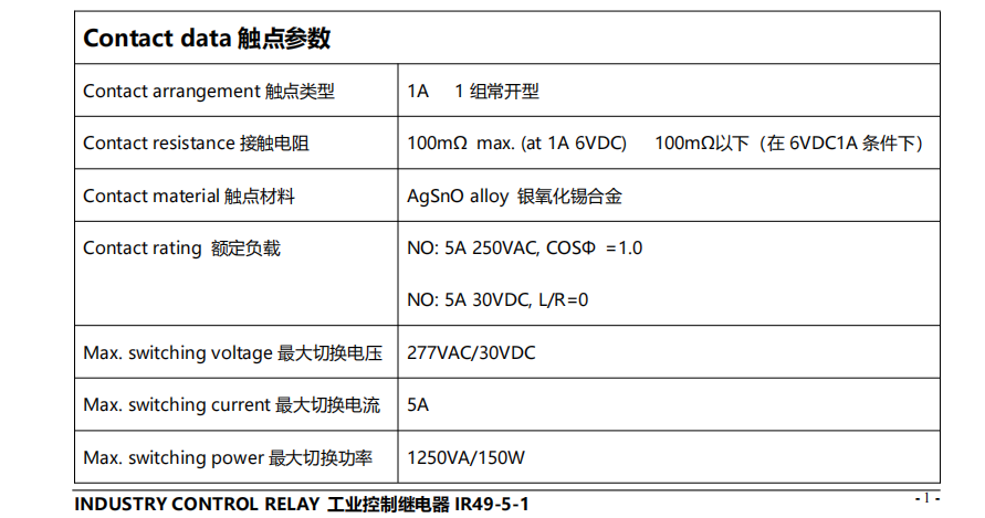 IR49-5(1P) Industry Control Relay 工业控制继电器